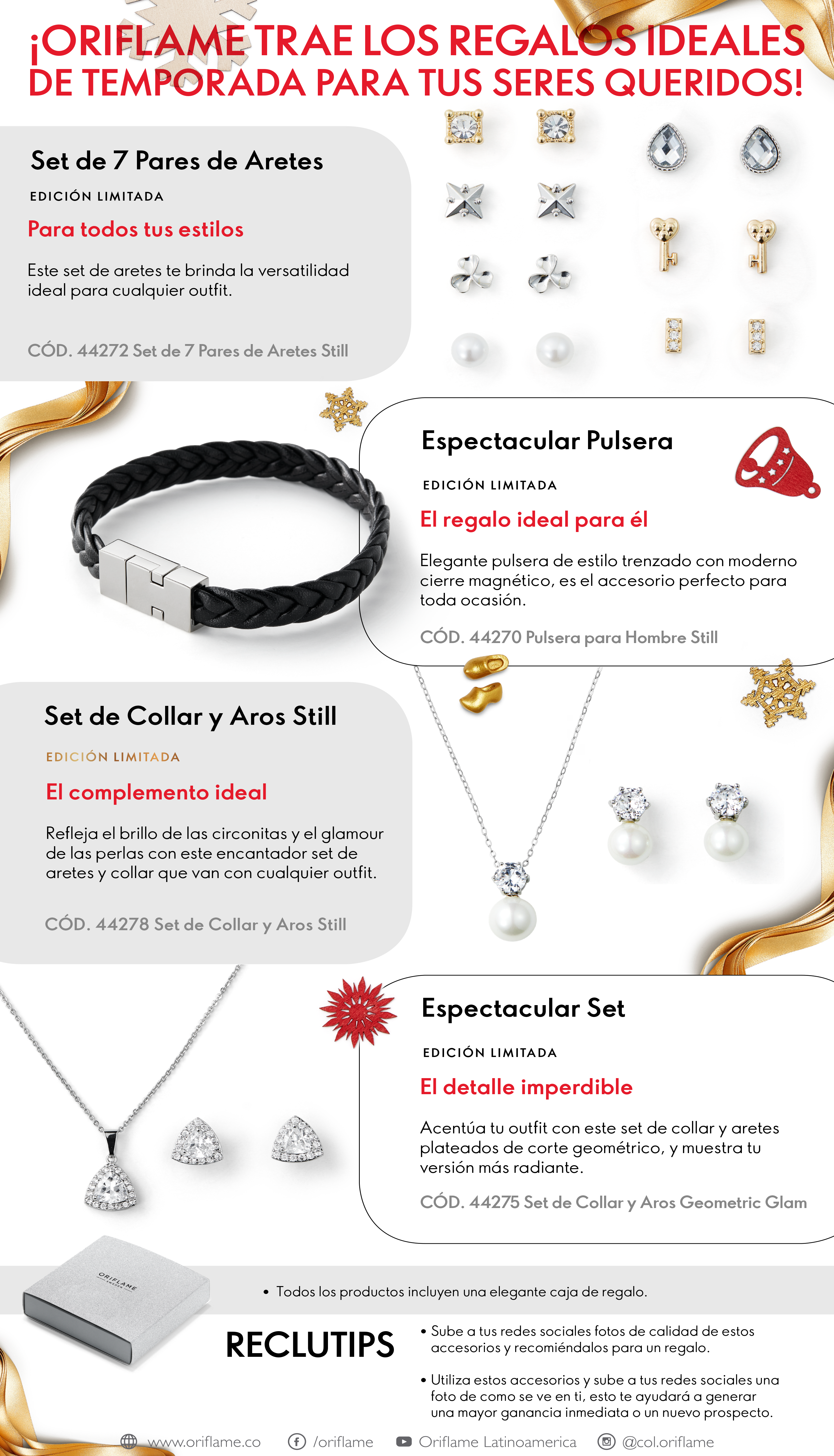 Set de 7 Pares de Aretes Still, Pulsera de Hombre Still, Set de Collar y Aros Still y Set de Collar y Aros Geometric Glam