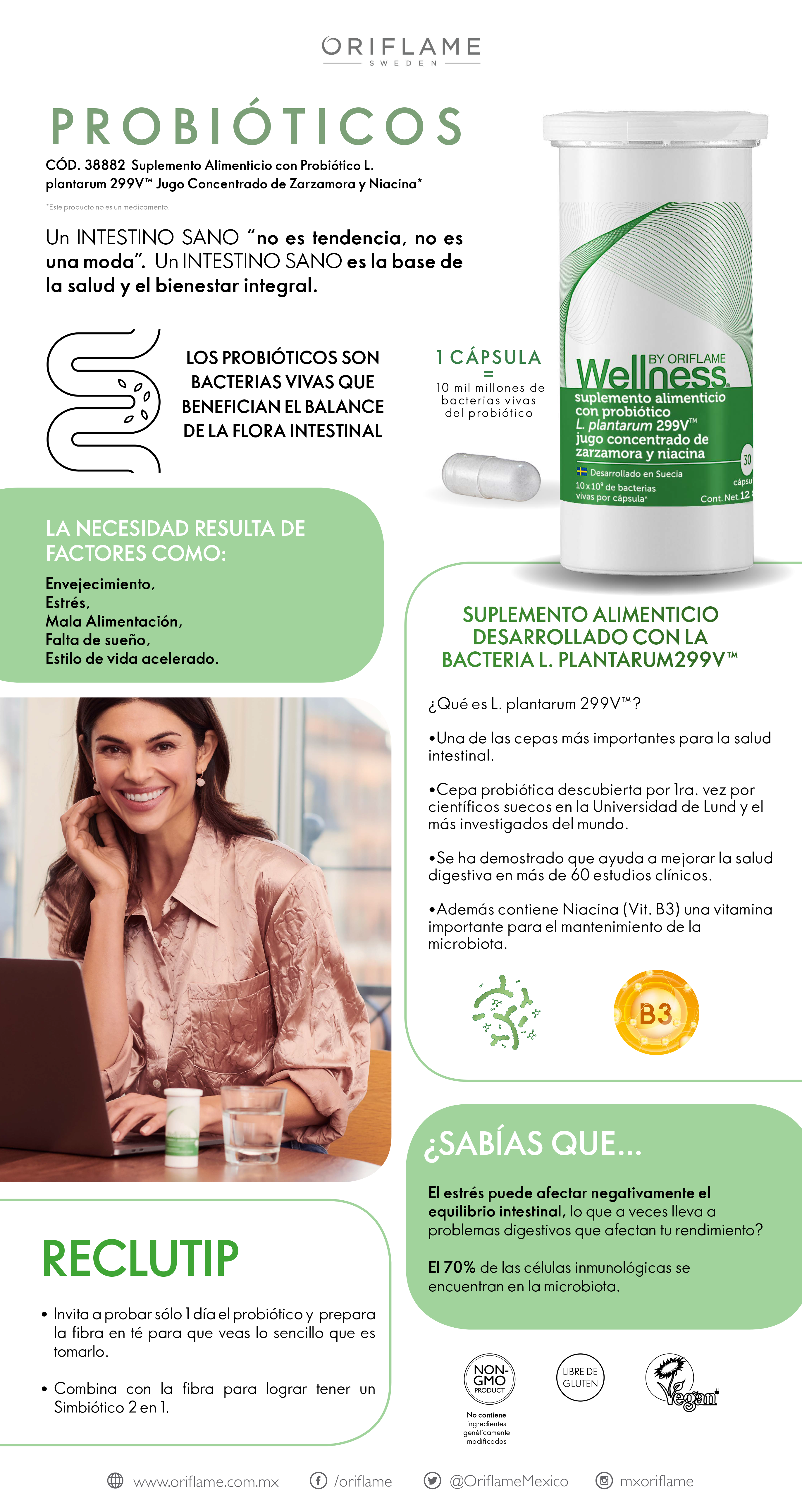 Suplemento Alimenticio con Probiótico L. plantarum 299V™ Jugo Concentrado de Zarzamora y Niacina*