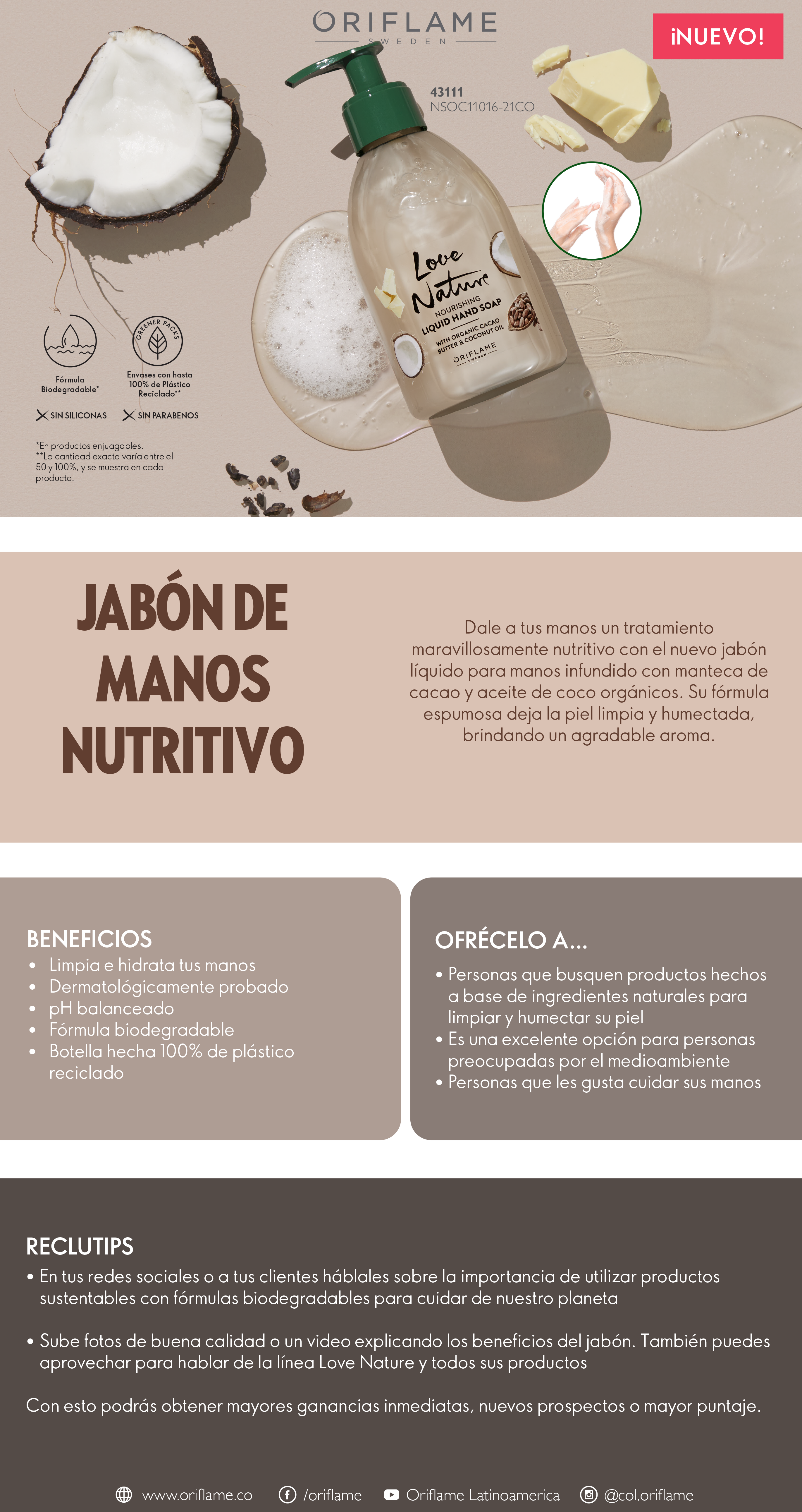 Love NatureCrema de Manos con Extracto de Coco Orgánico