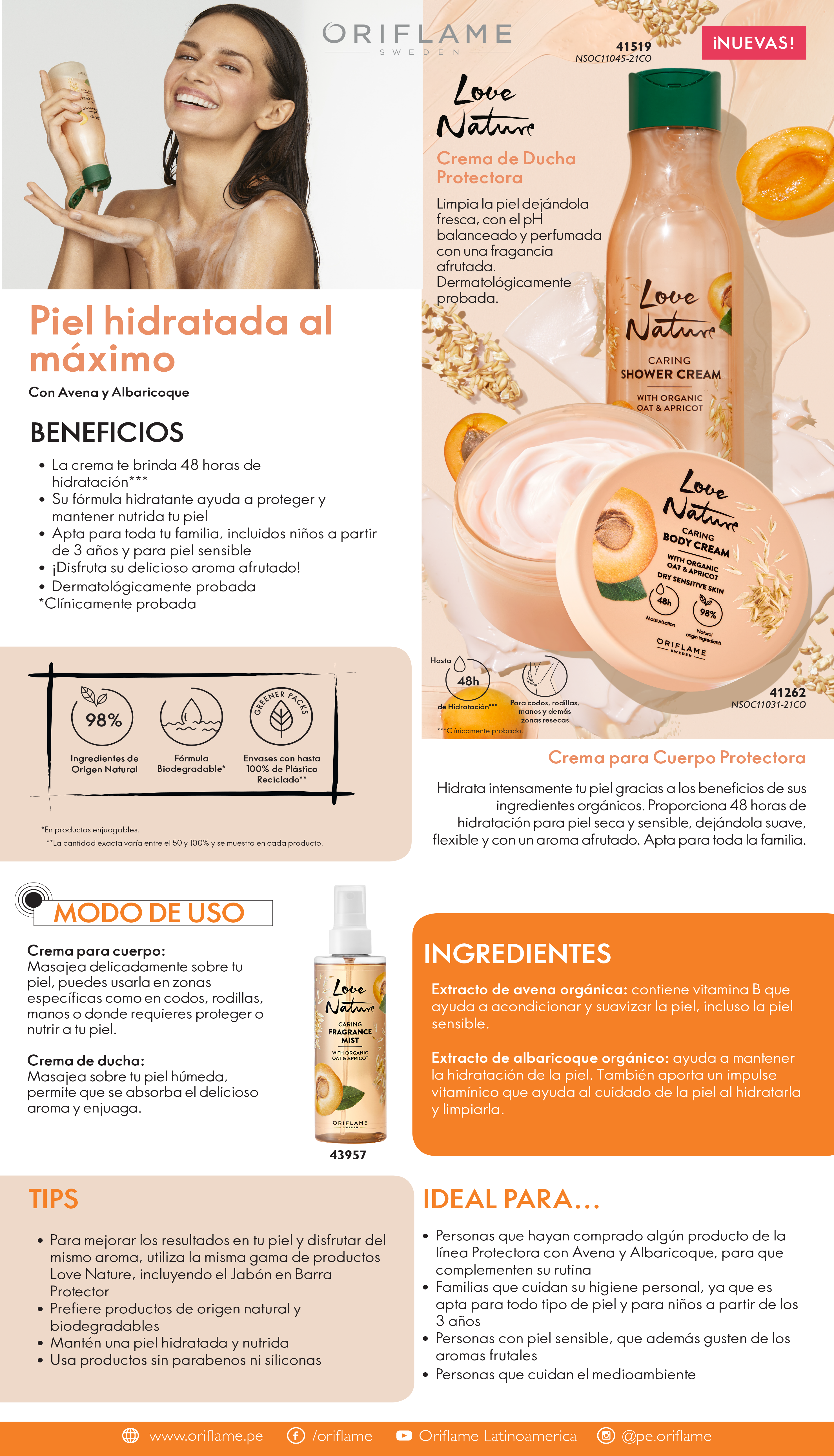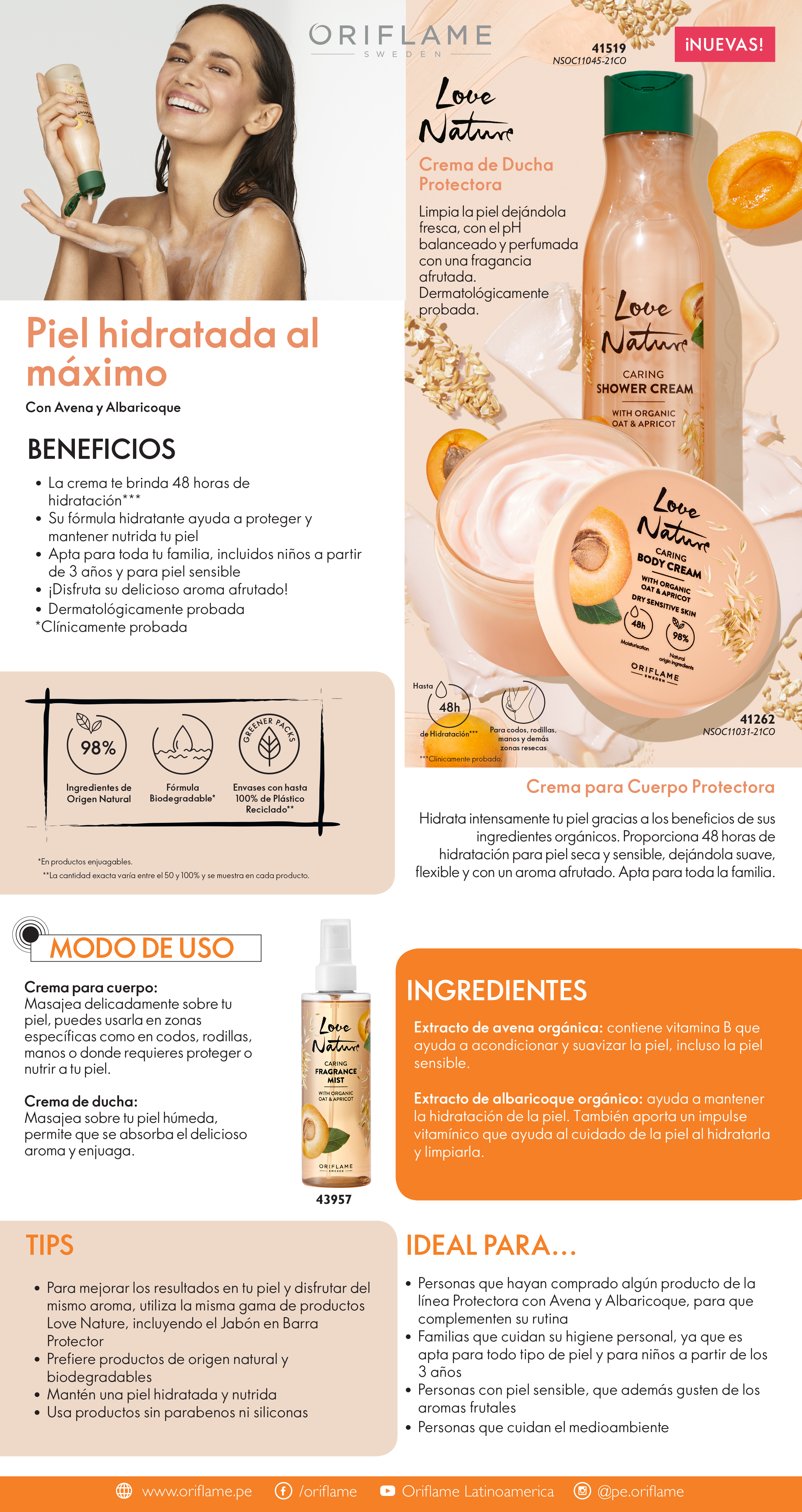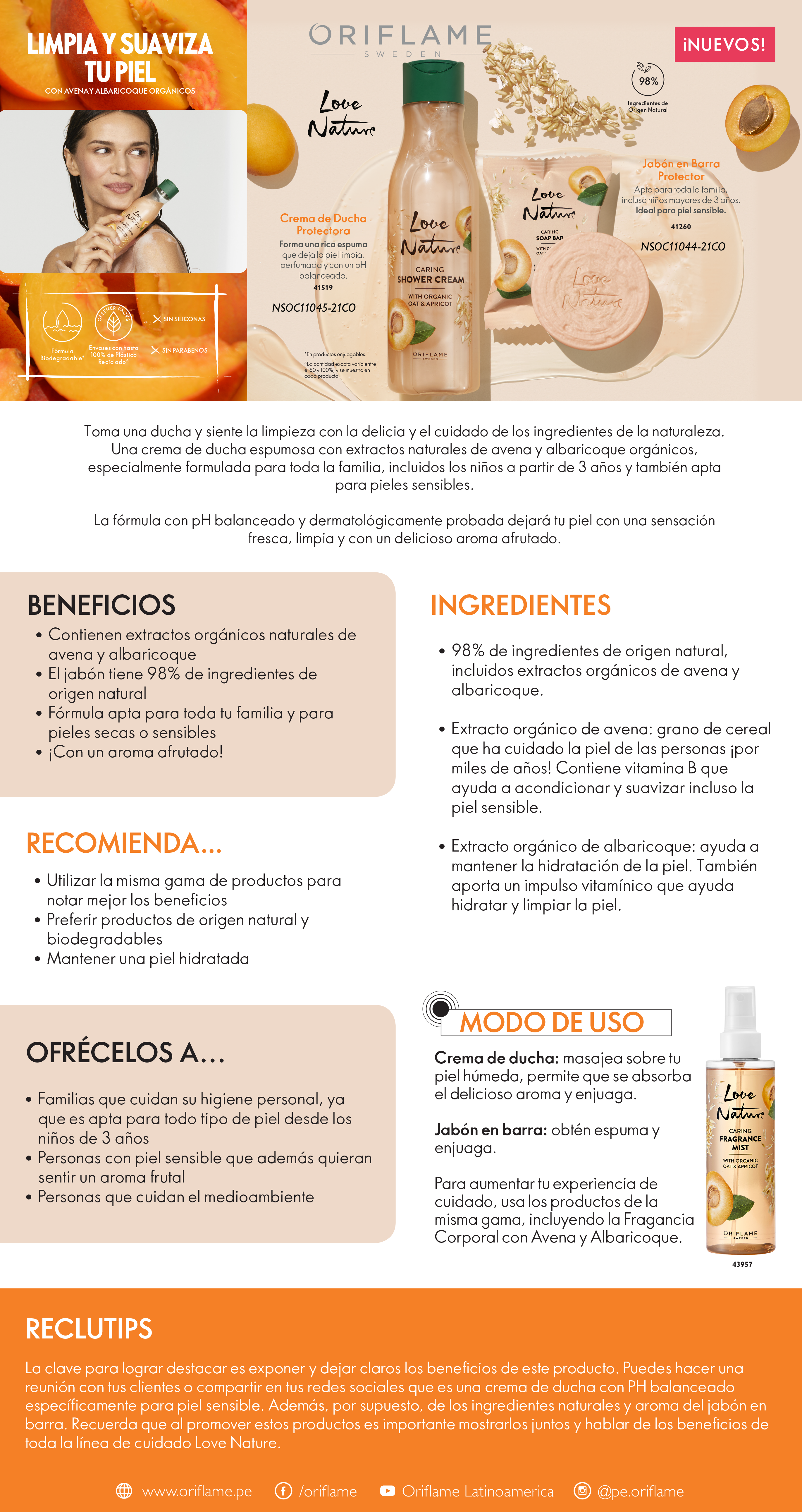 Love NatureCrema de Ducha y Crema para Cuerpo Protectora con Avena y Albaricoque