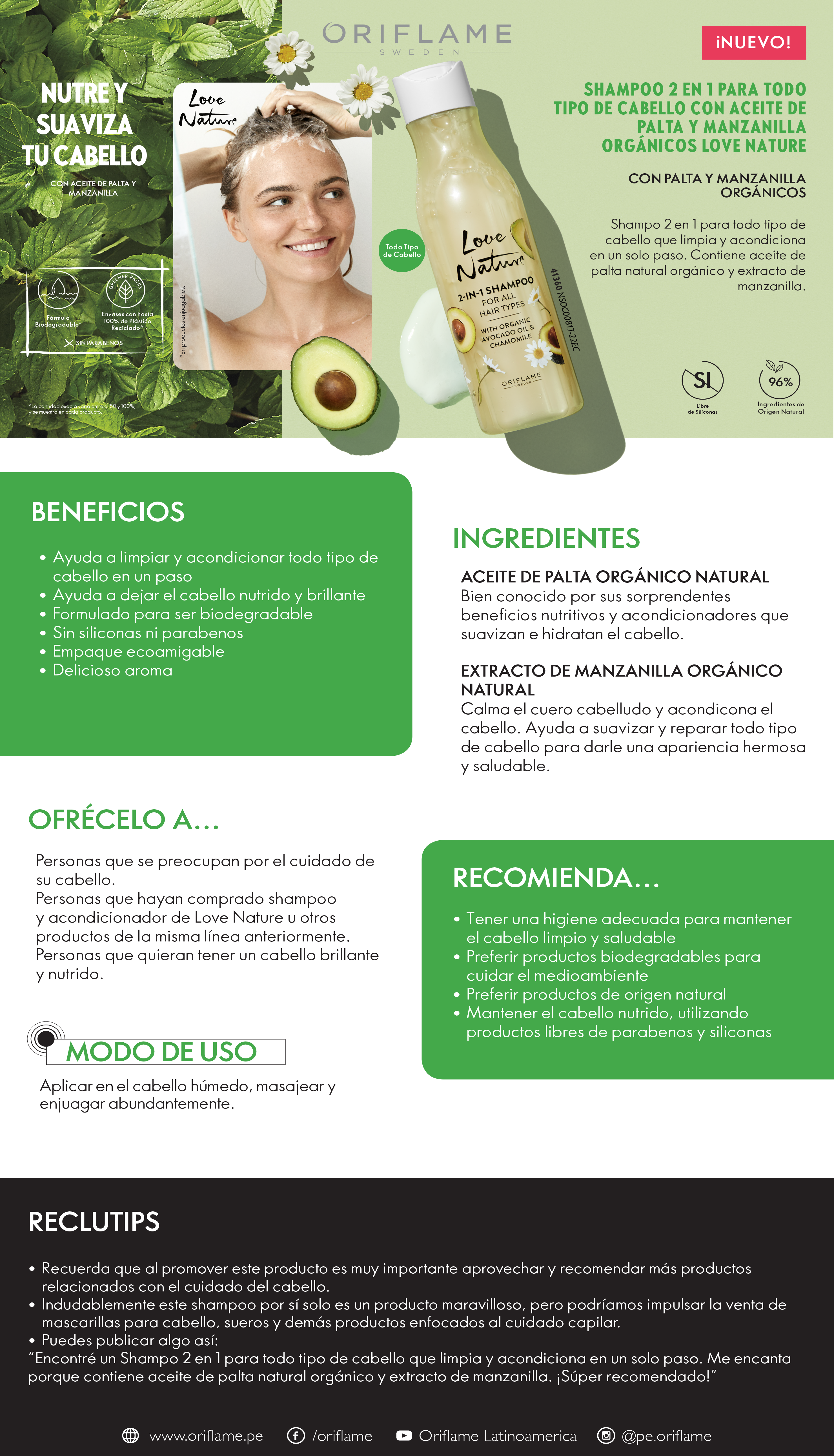 Love NatureShampoo 2 en 1 para todo tipo de Cabello con Aceite de Palta y Manzanilla Orgánicos