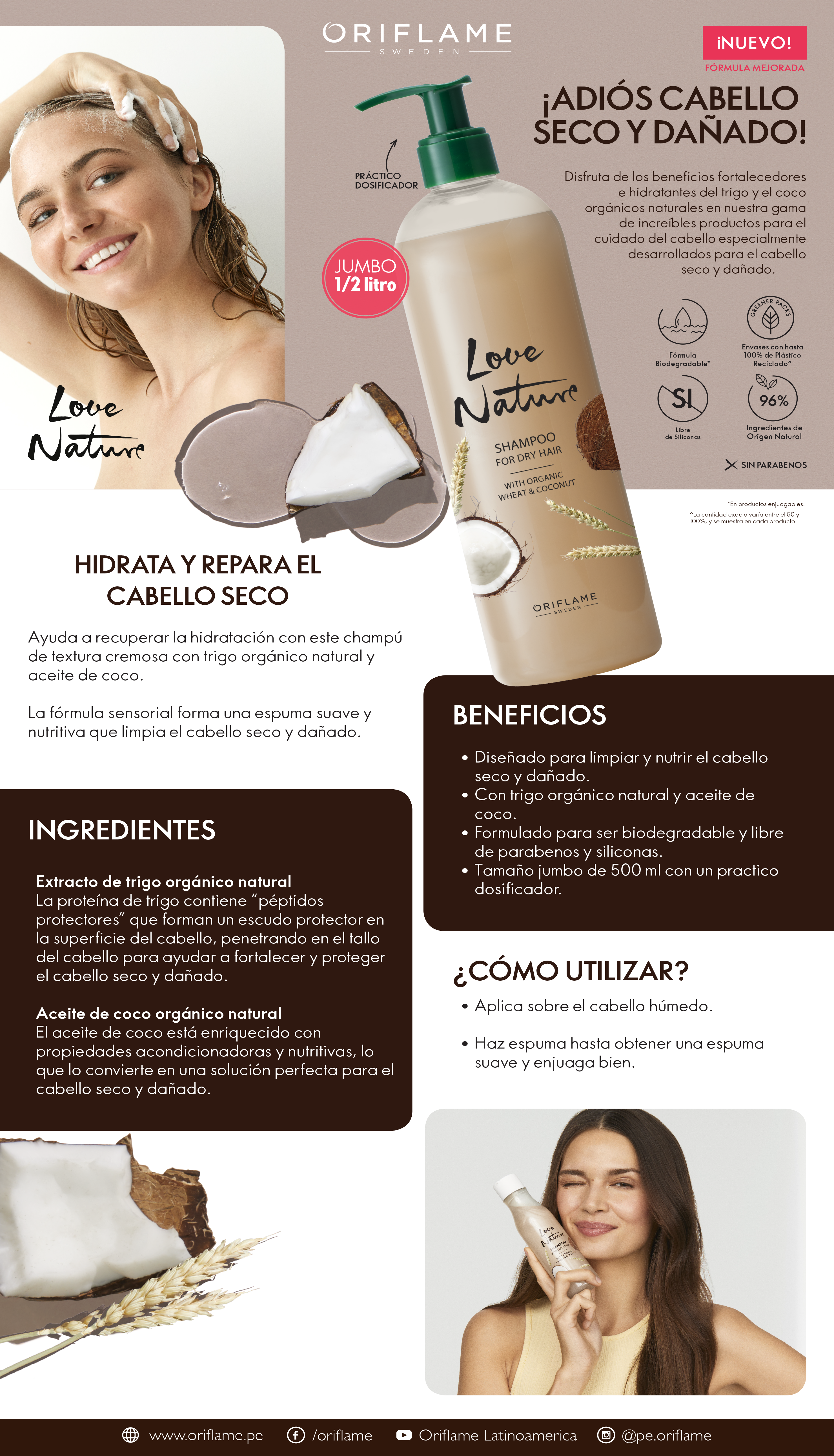 Love NatureShampoo para Cabello Seco con Extracto de Avena Orgánica y Coco
